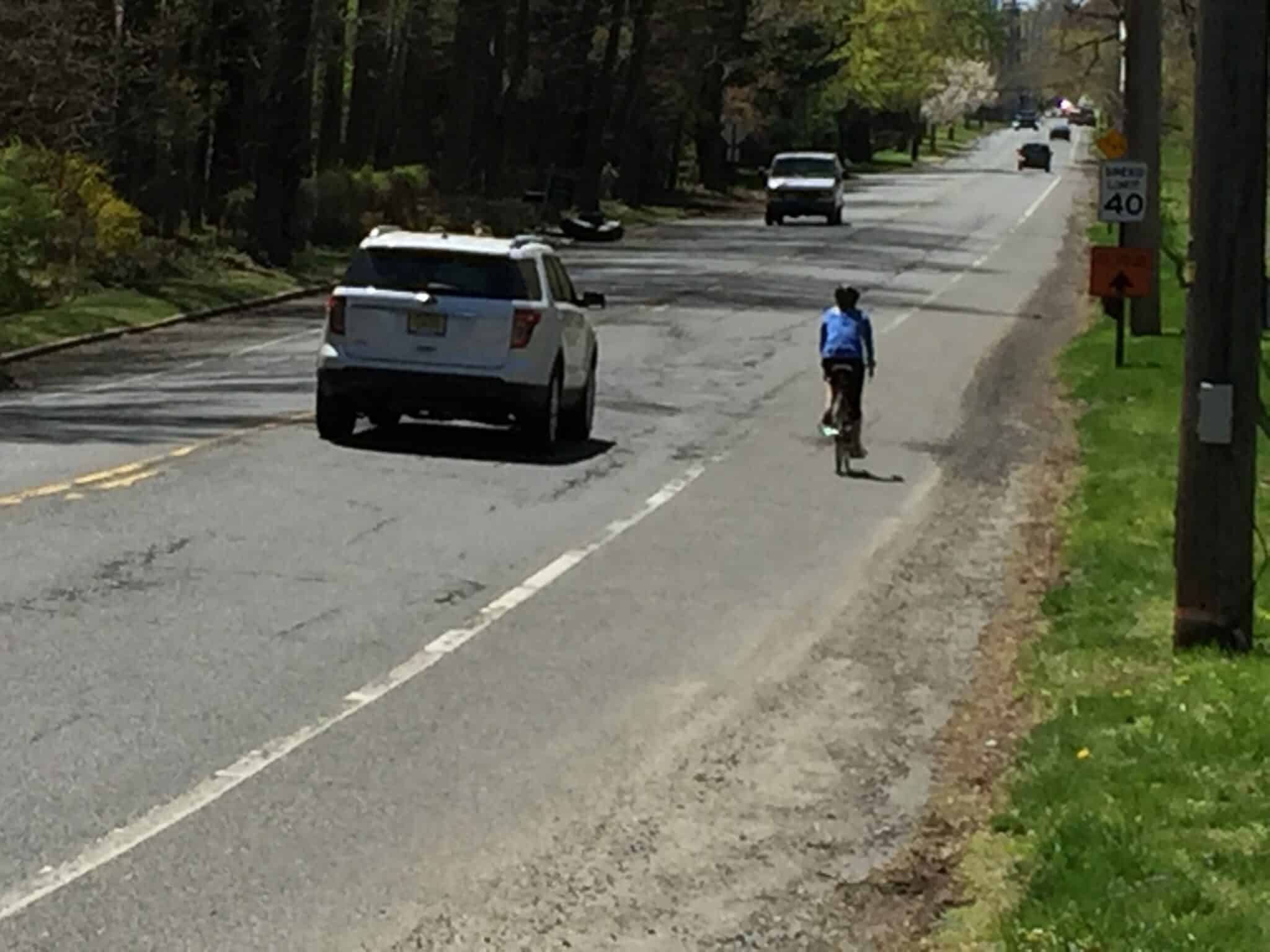 Pedal a few miles along these roads, and it is easy to see the opportunity that Monmouth County is foregoing by refusing to stand by its Complete Streets policy. These are wide, flat roads that are laid out in a grid pattern formed by the former estates of this coastal section of the county. The towns are as ride-able as Morristown, Montclair, Haddonfield and sections of Rutherford have proved to be. Why, then are most casual bike riders riding on the sidewalks of these towns? Because car travel speeds are consistently higher than the posted speed, and enforcement doesn’t appear to exist. Travel lanes widths are at least 12 feet, making car speed a free-for-all. Many other roads in the towns do not even have shoulder striping. This SUV friendly area has chosen to emphasize car speed over bicyclist and pedestrian safety and it is apparent EVERYWHERE.